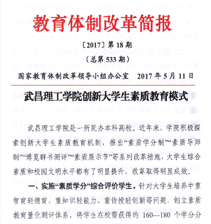 《教育体制改革简报》推广武昌理工学院经验